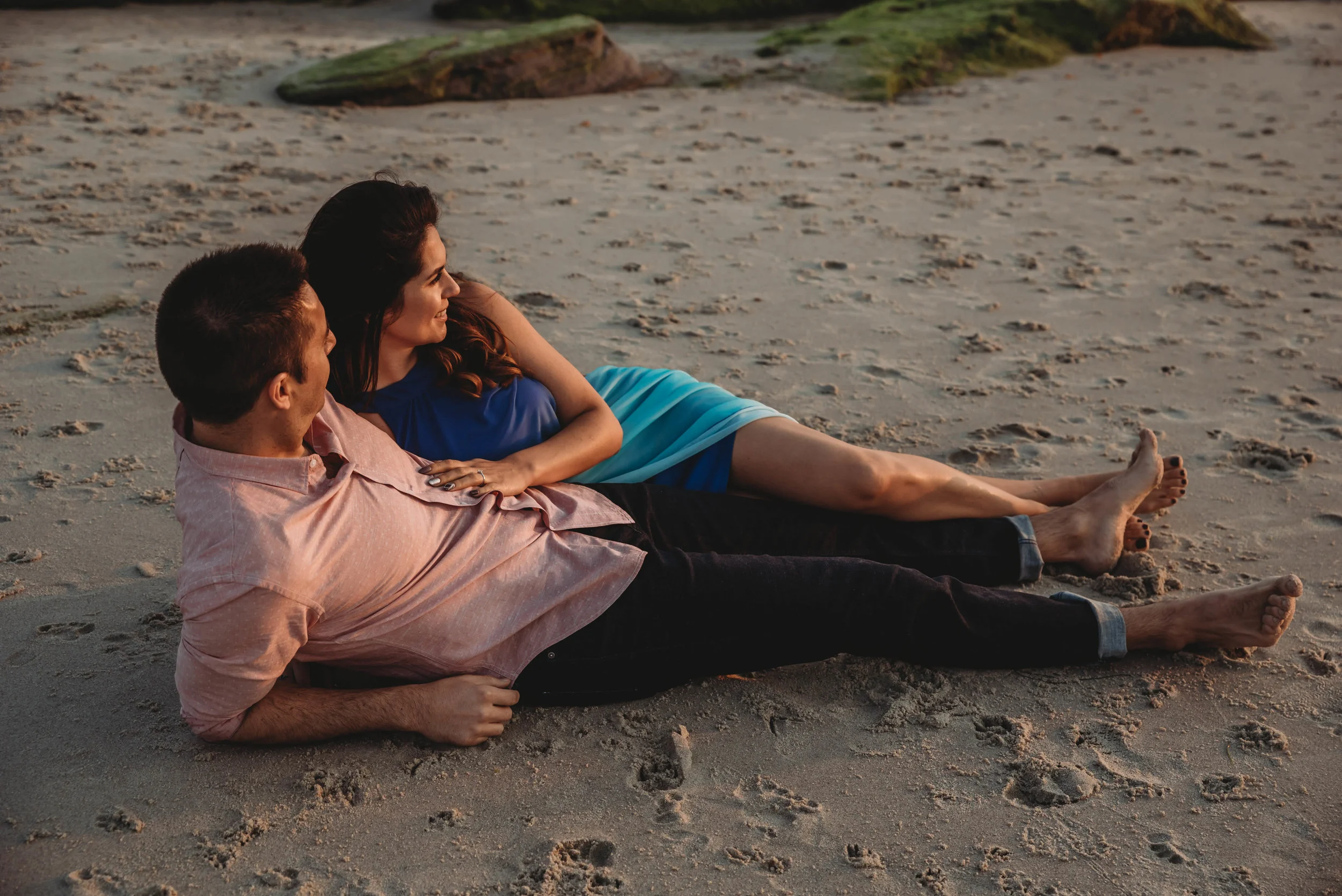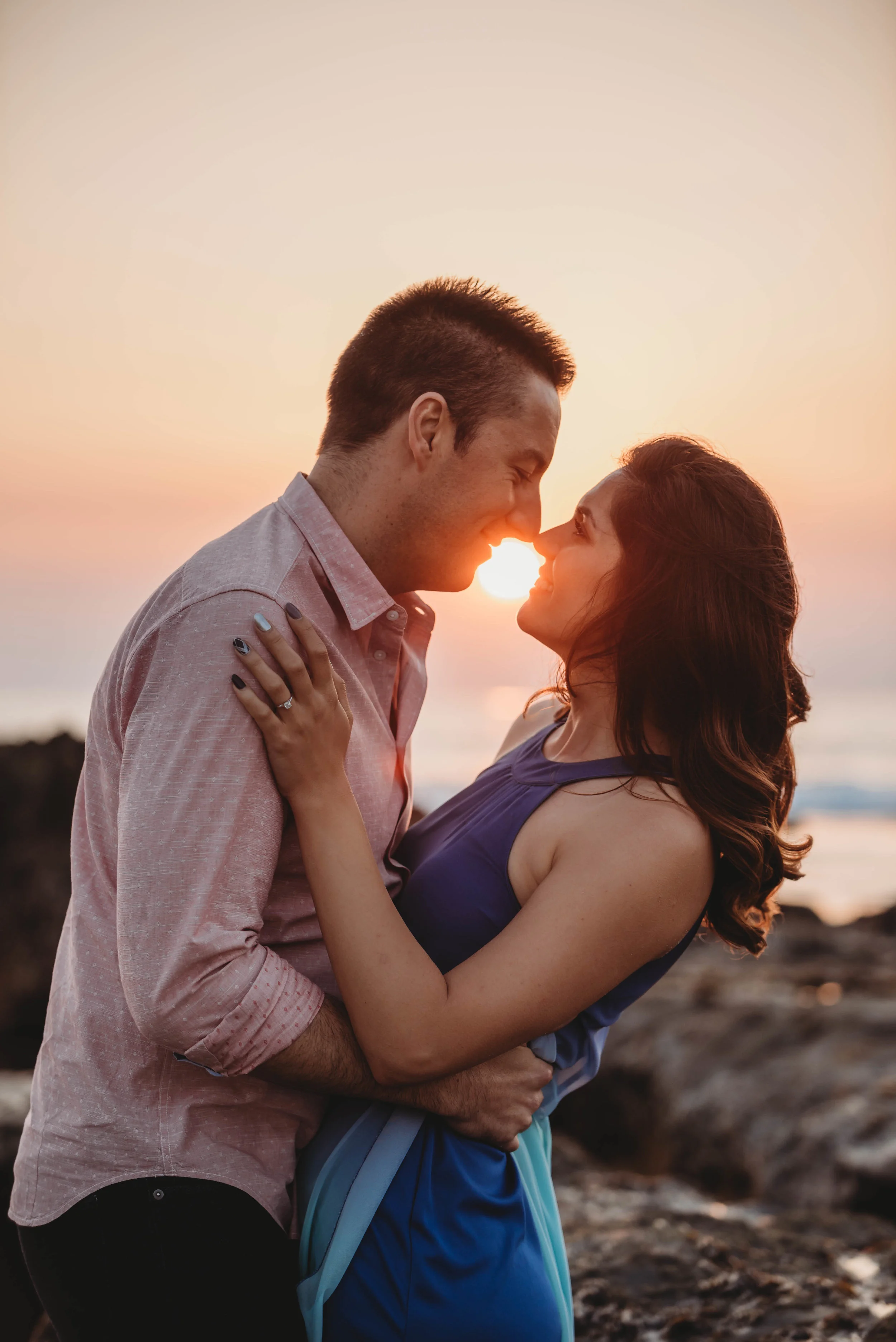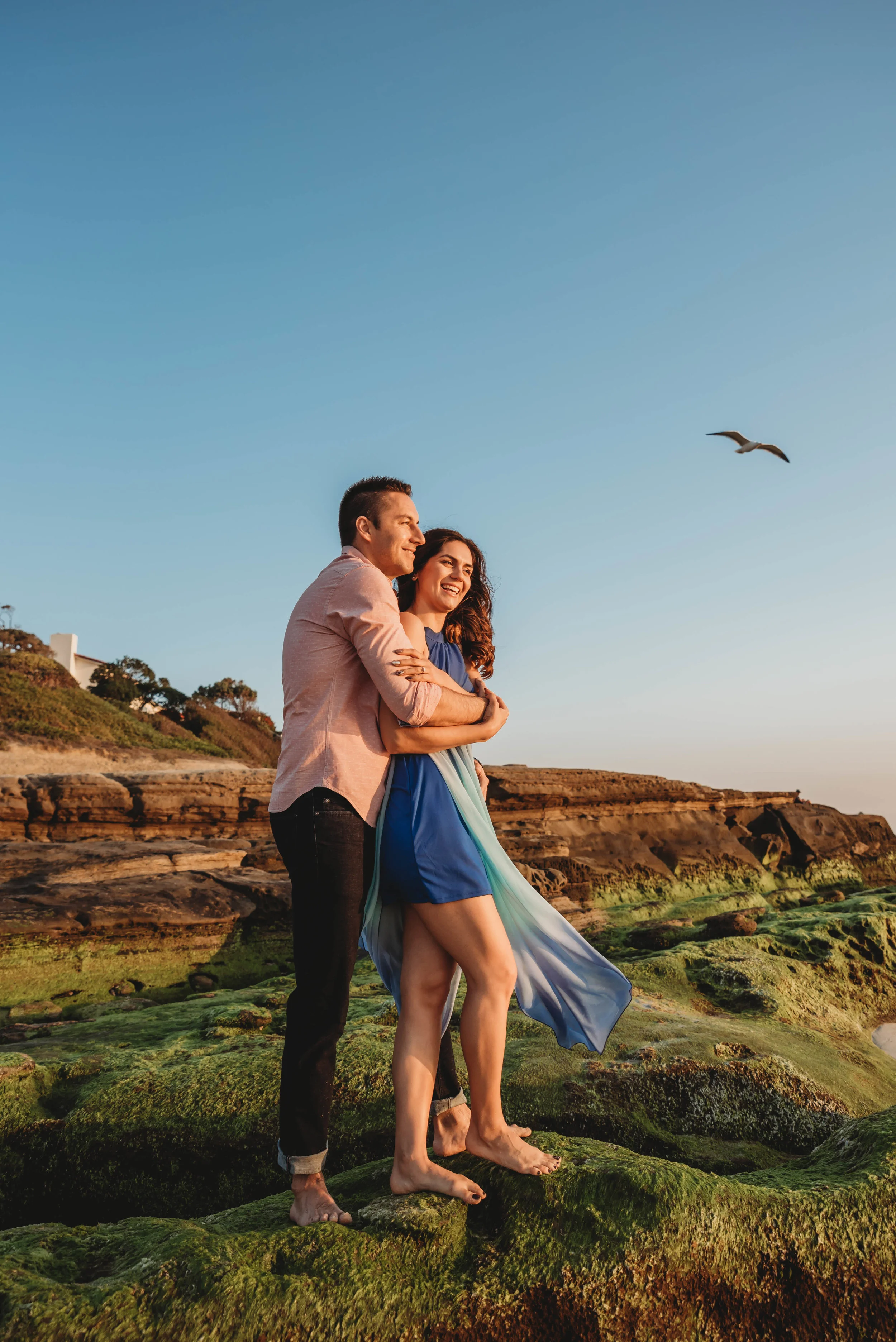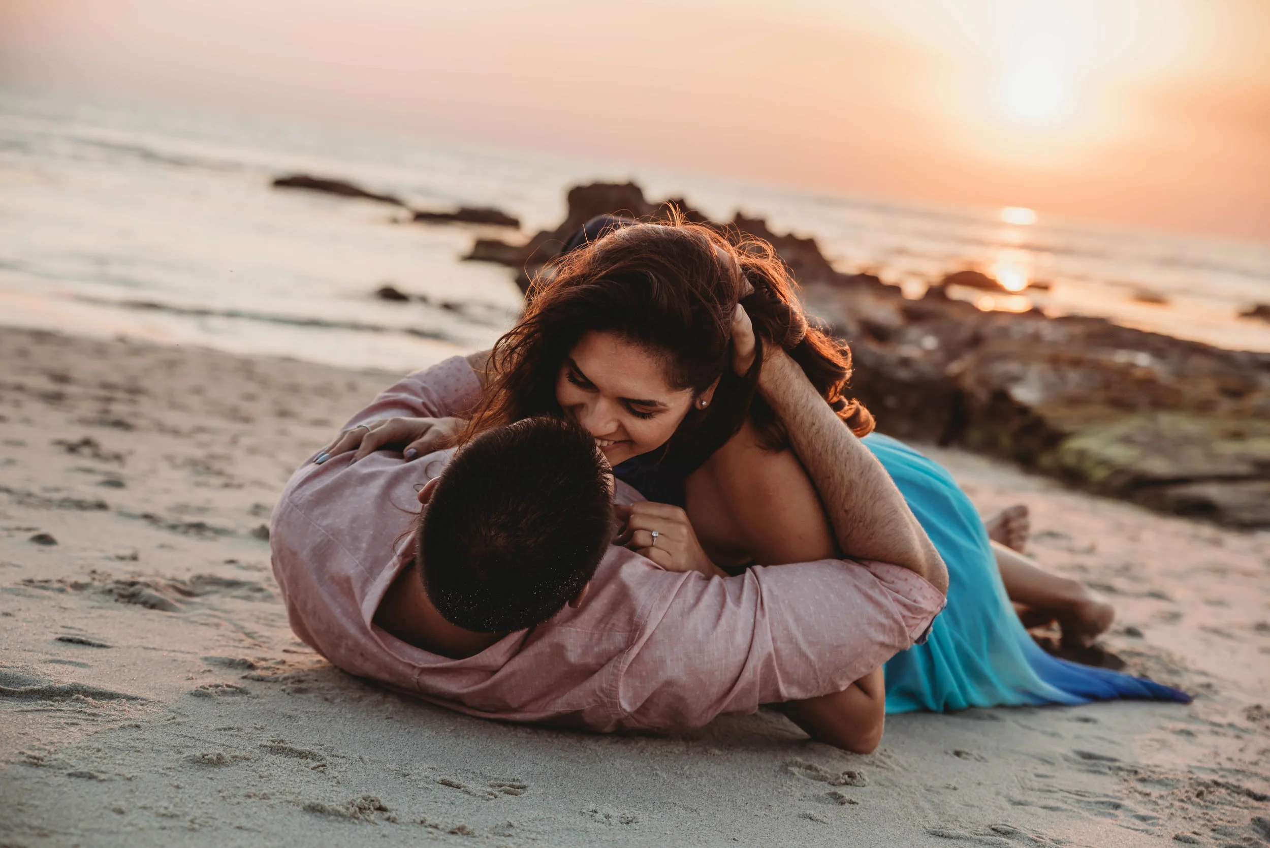 This engagement session was a long time in the making. Marina contacted me in August and stressed out how much she wanted those beautiful sunset/golden hour tones in her photos. We set up our appointment and to our biggest disappointment it ended up being the gloomiest day in San Diego. We met at Windansea beach and even though I was leaving to Europe in one day I took a chance and rescheduled our shoot for the next day hoping it would open up, but unfortunately it didnβt. I left on my trip being all sad I lost such a beautiful couple. But they waited!!!! They waited over a month for me to come back from my trip and we finally made it happen and WOW.... it was so worth it!!!!! THINGS REALLY HAPPEN FOR A REASON!!!! The warmest day and a gorgeous sunset paired with the love and the connection between these two beautiful people made this shoot my favorite engagement session of 2018.