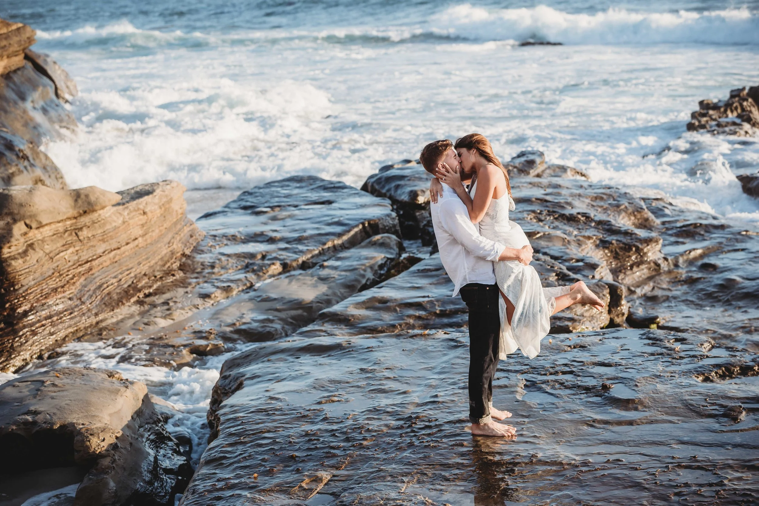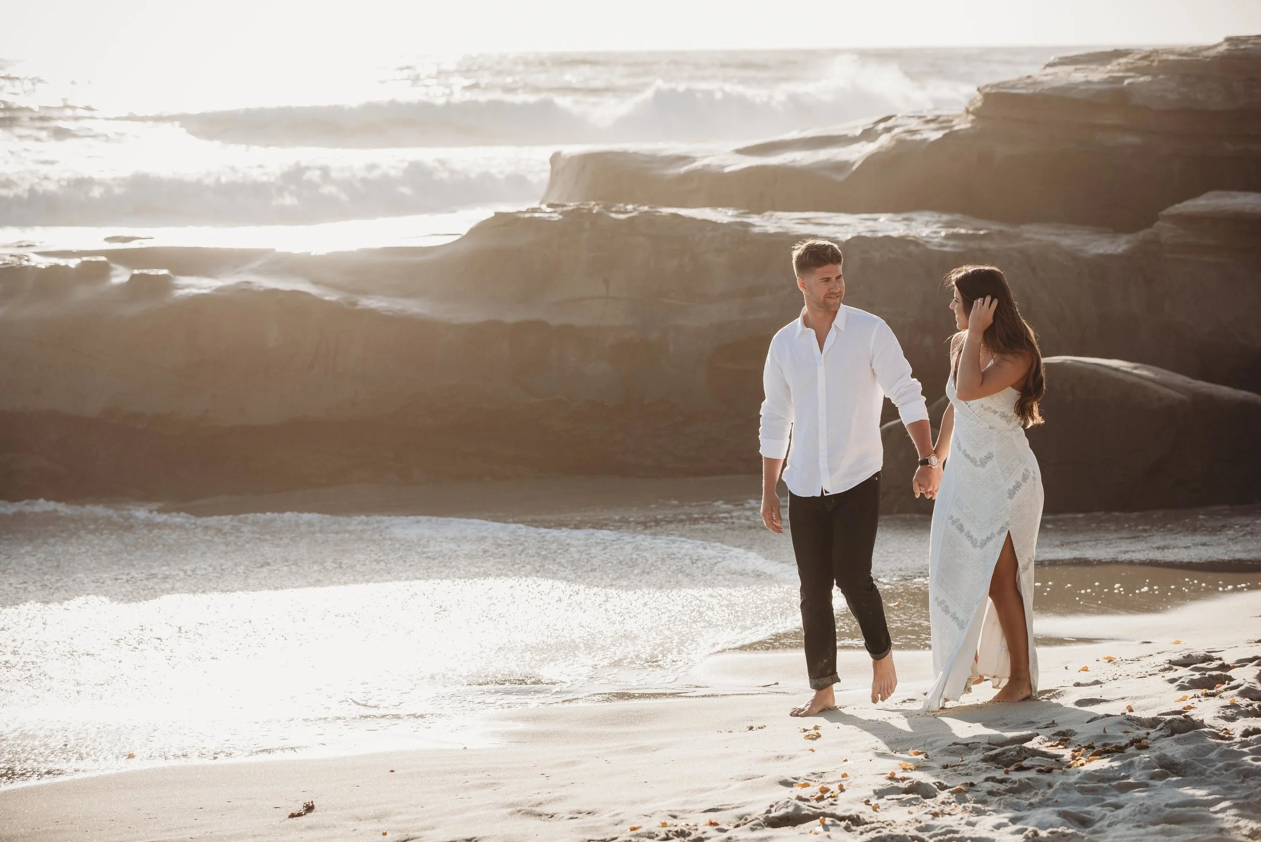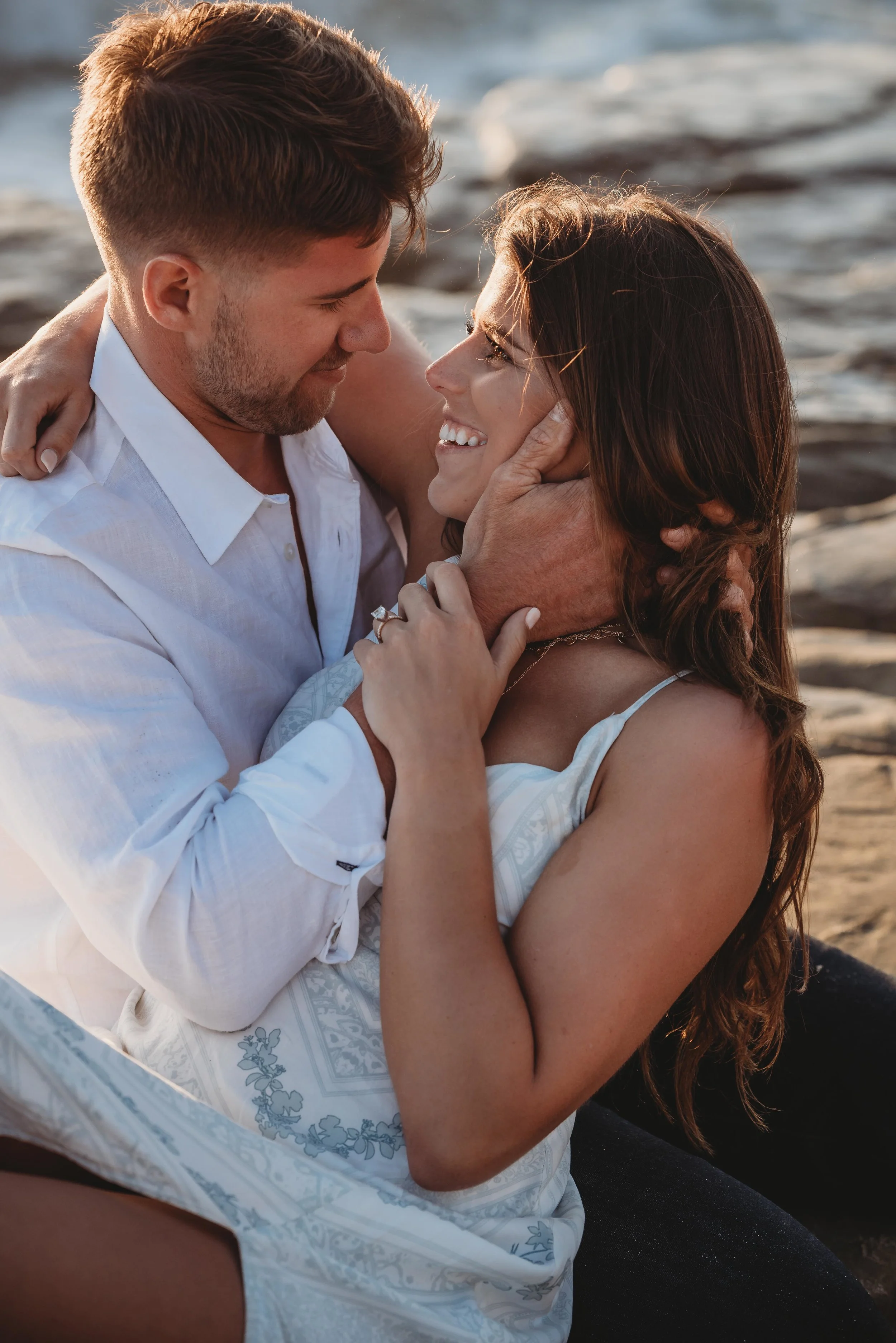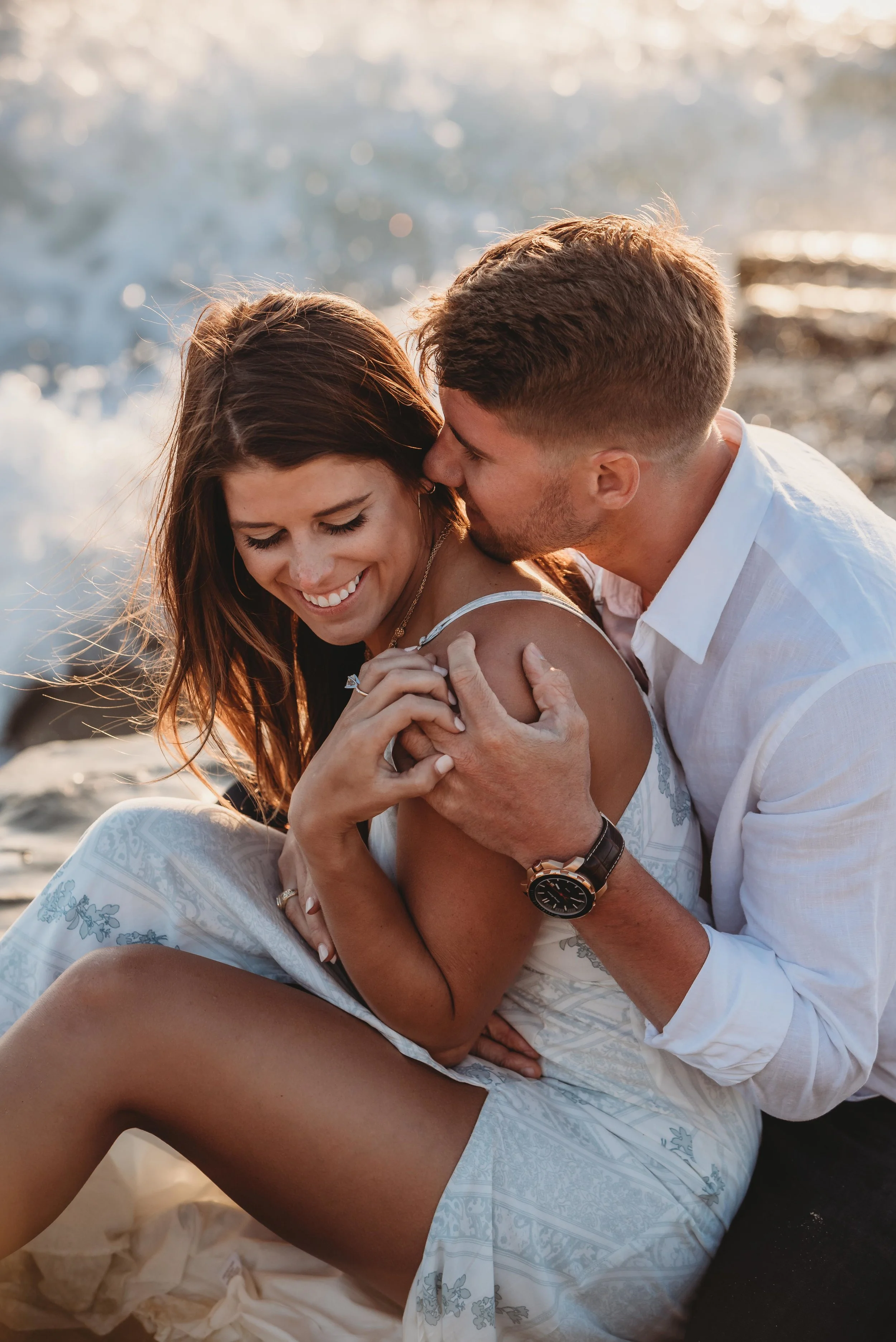 Brandon surprised Casey with a trip to San Diego and told her they were going to a nice restaurant on the beach.. He told her the only way to it was to walk on the beach (not ideal in wedges). They walked in Windansea Beach in La Jolla until he found his perfect spot and had already planned hidden photographers (myself and Olia Luis) and got down on one knee to tell Casey that she has always been the one 13 years later. His proposal was a complete fairytale. Timing is everything!