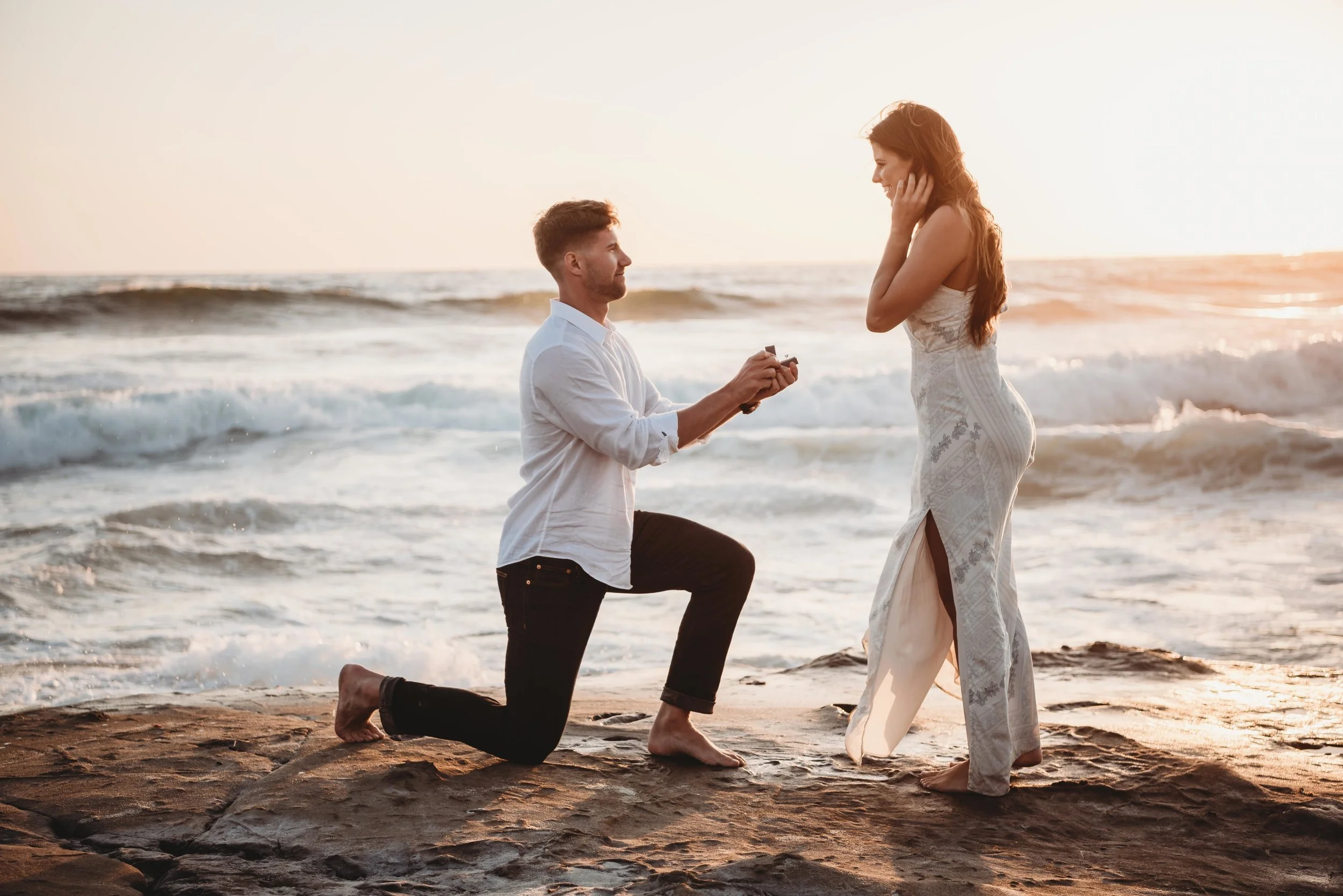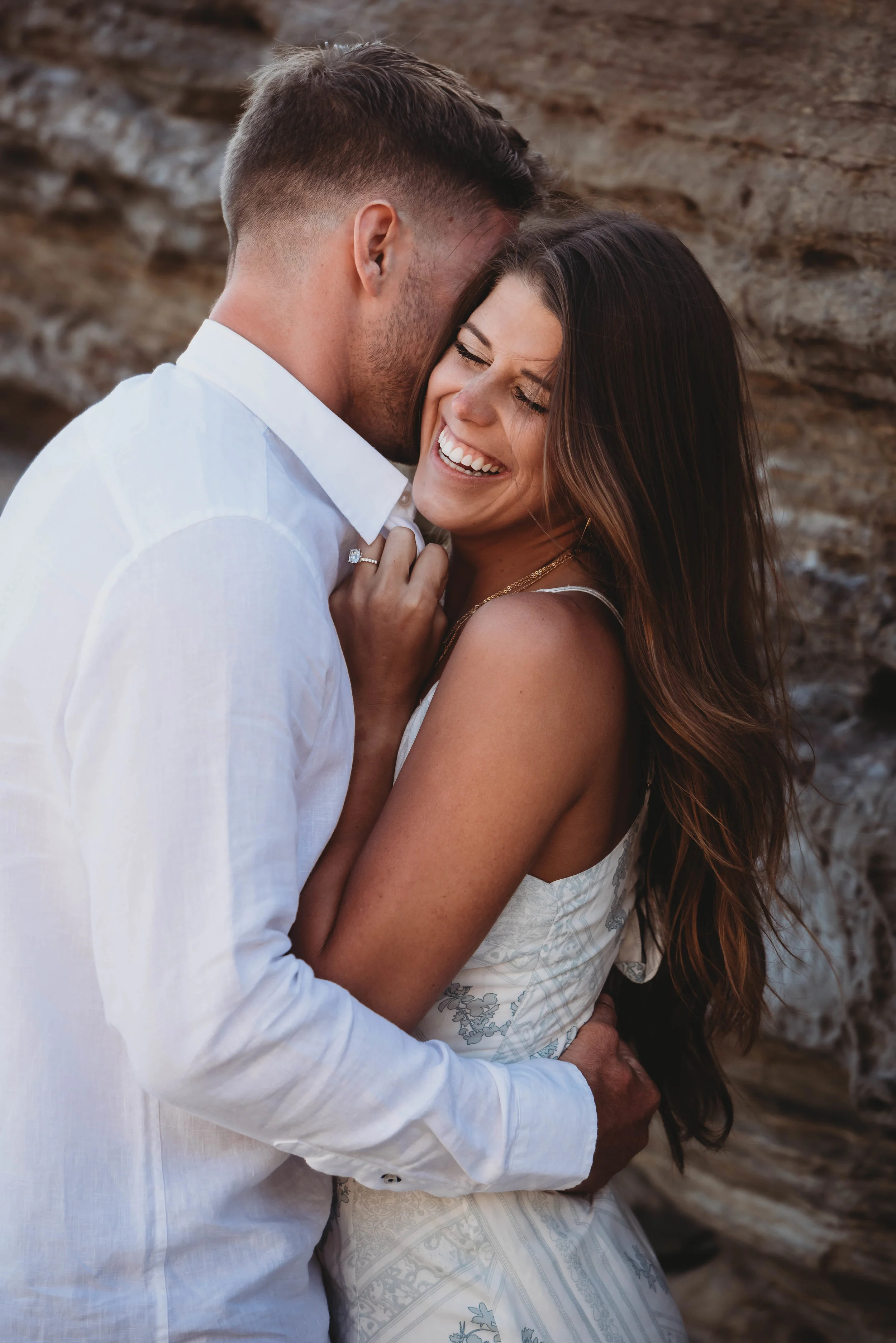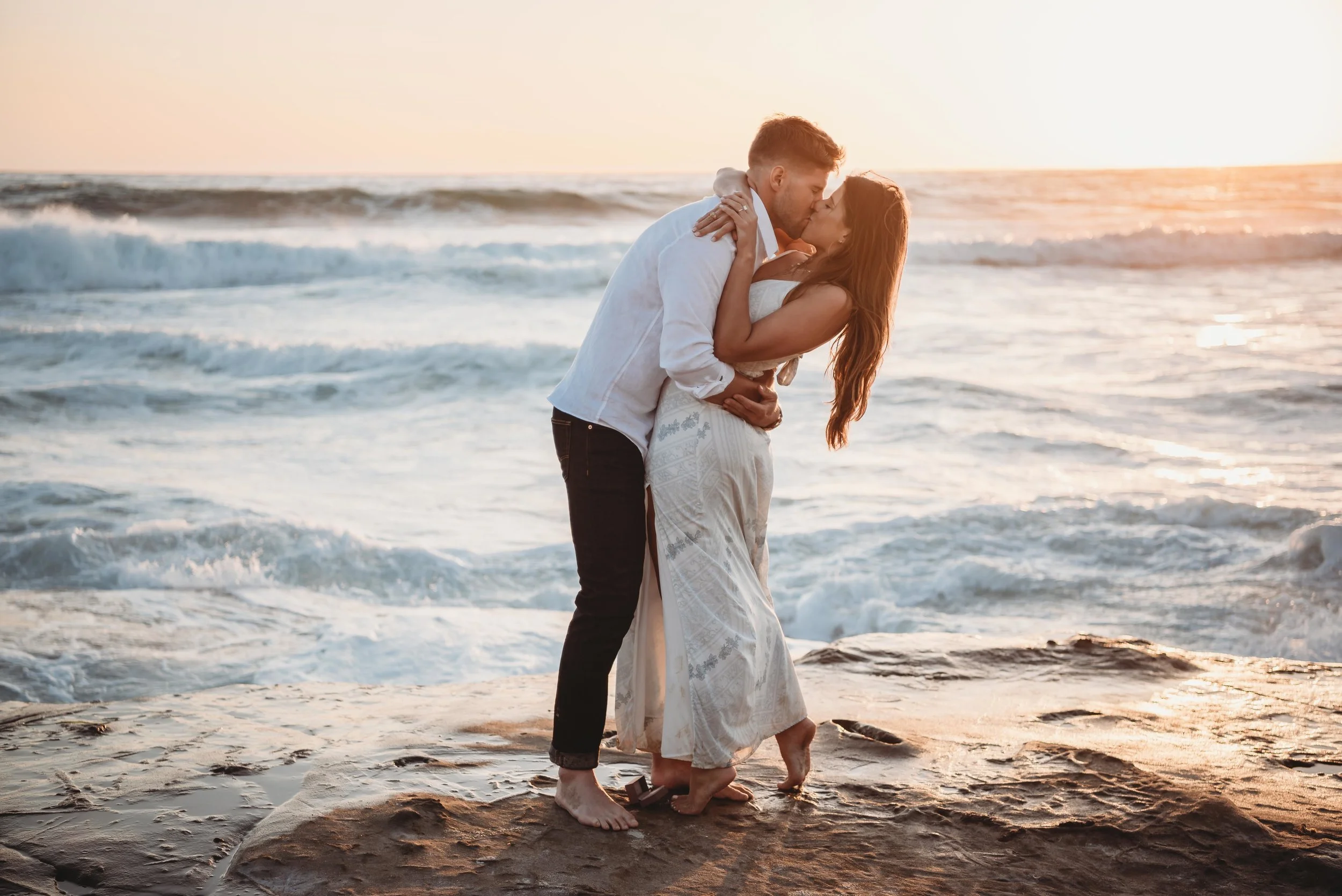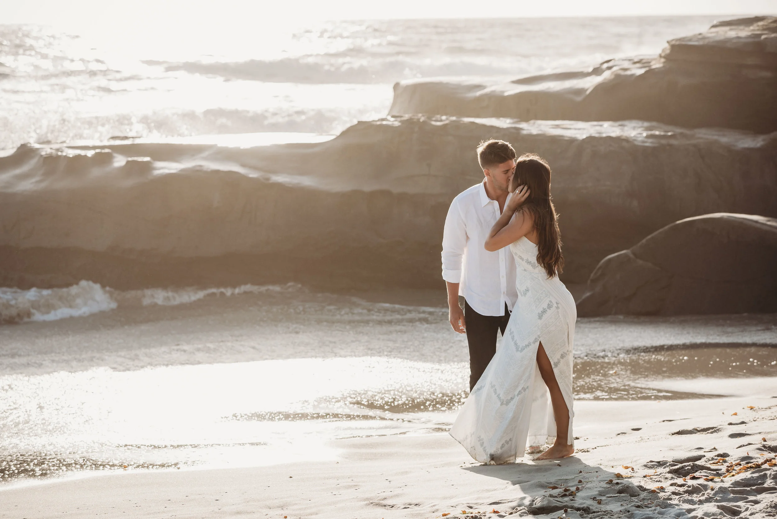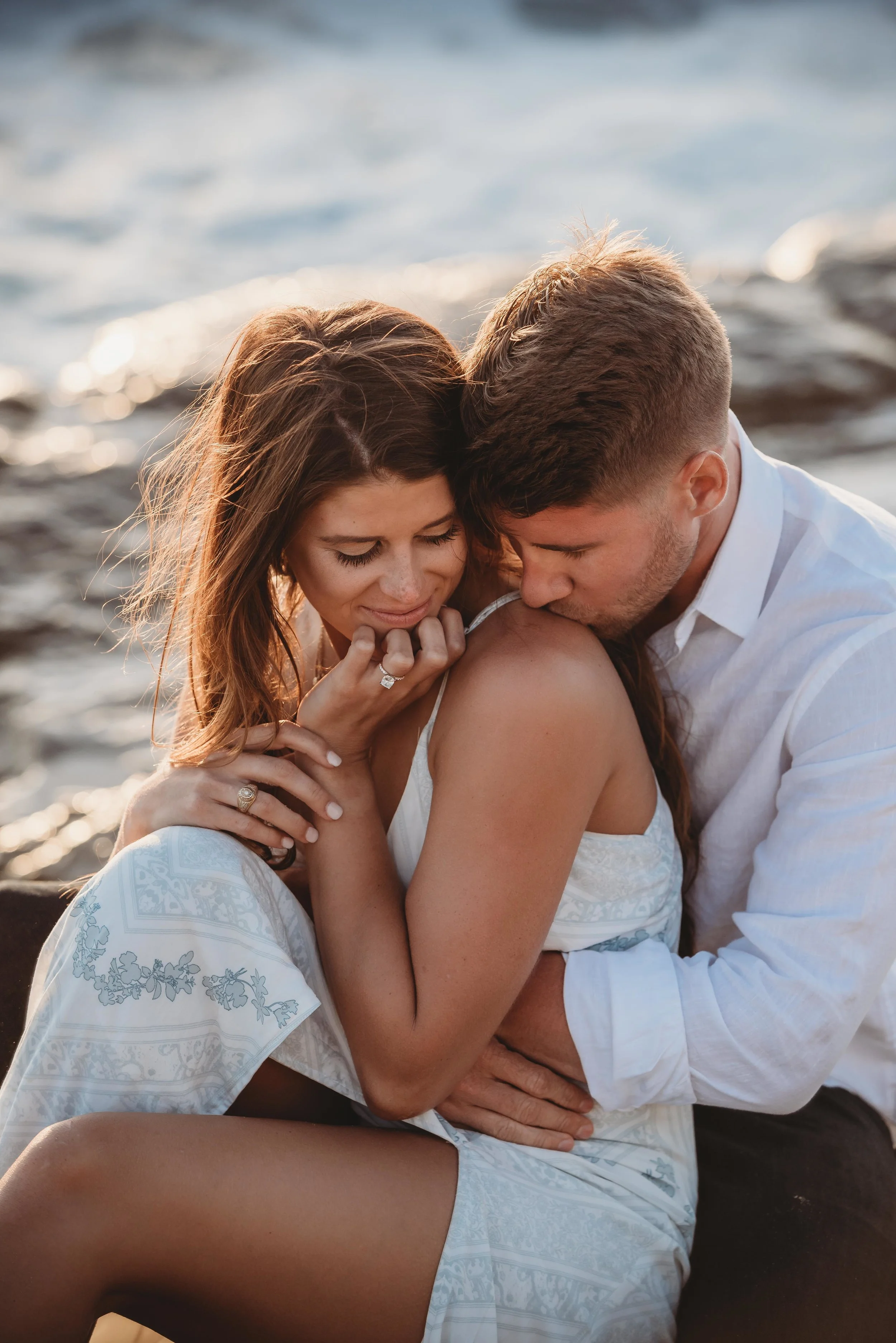 Brandon surprised Casey with a trip to San Diego and told her they were going to a nice restaurant on the beach.. He told her the only way to it was to walk on the beach (not ideal in wedges). They walked in Windansea Beach in La Jolla until he found his perfect spot and had already planned hidden photographers (myself and Olia Luis) and got down on one knee to tell Casey that she has always been the one 13 years later. His proposal was a complete fairytale. Timing is everything!